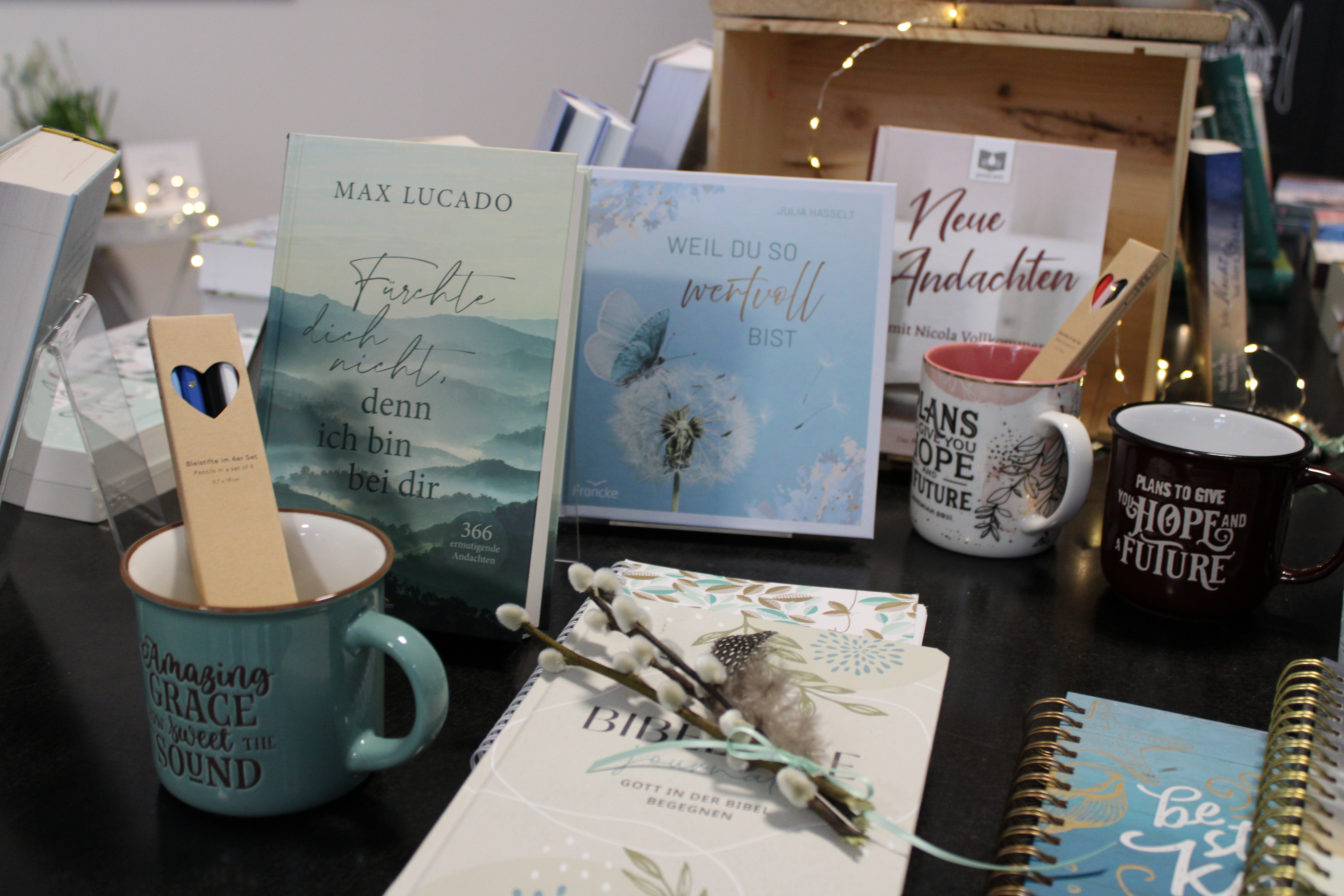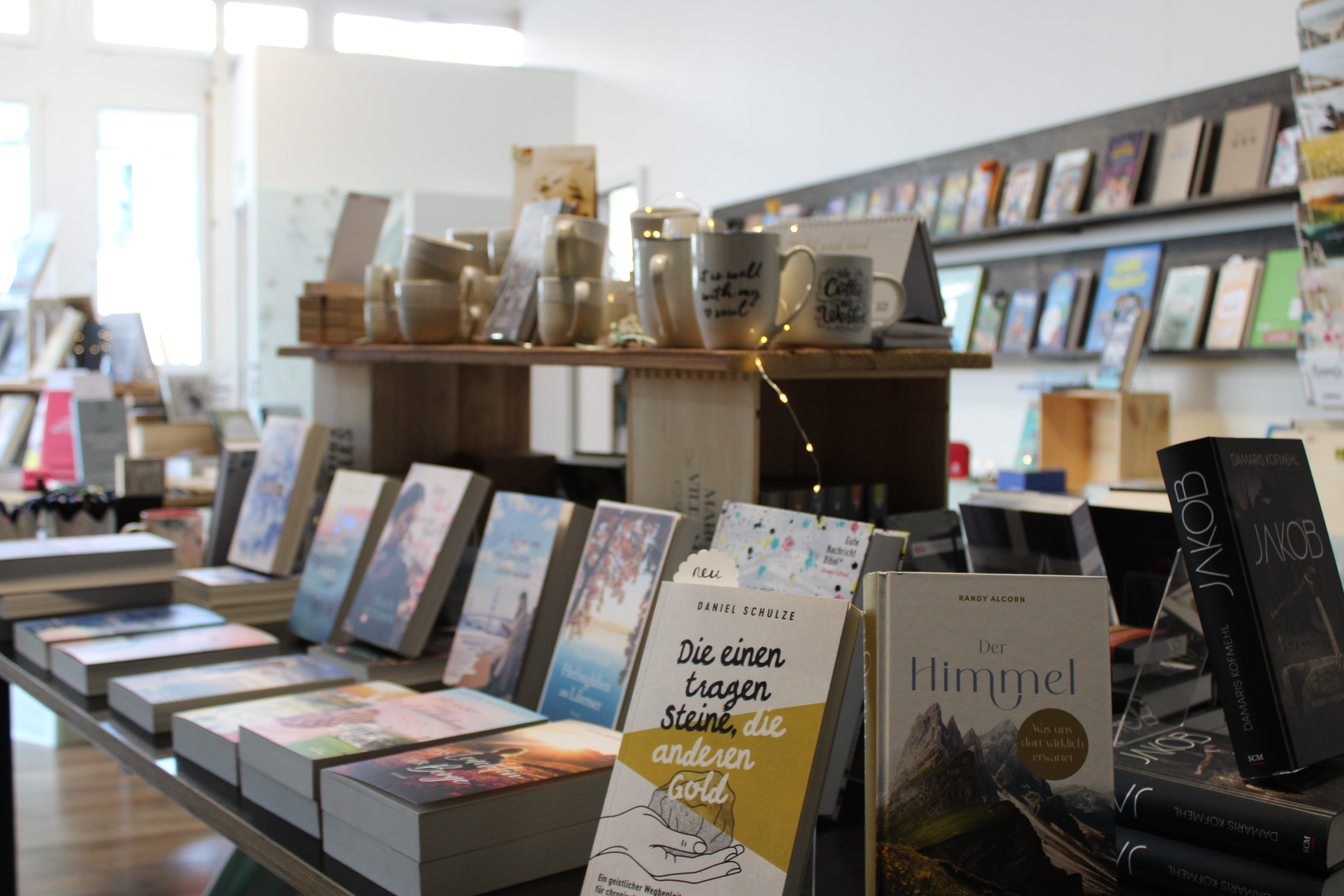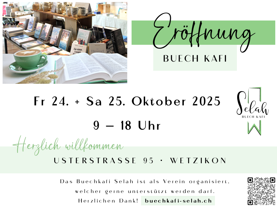 Im Buechkafi Selah ist Raum für Begegnung, Austausch und Kaffee - inmitten eines ausgewählten Sortiments an Bibeln, Bücher, Geschenke, Karten und mehr.