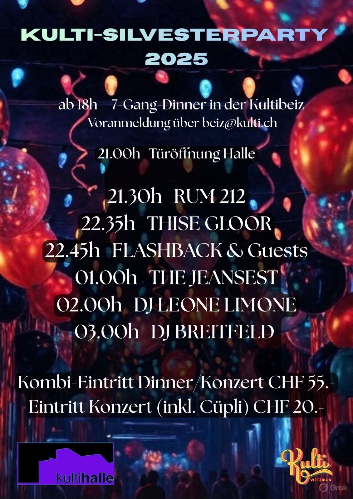 ab 18:00 Uhr: 7- Gang Dinner in der Kultibeiz ( voranmeldung über beiz@kulti.ch