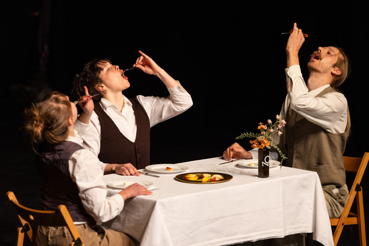 In diesem Stück werden kleine und grosse Themen rund um das gemeinsame Essen am Tisch verhandelt. Die drei Akteur: innen tun dies mit einer gehörigen Portion Humor und Verspieltheit, aber auch mit einem kritischen Blick.