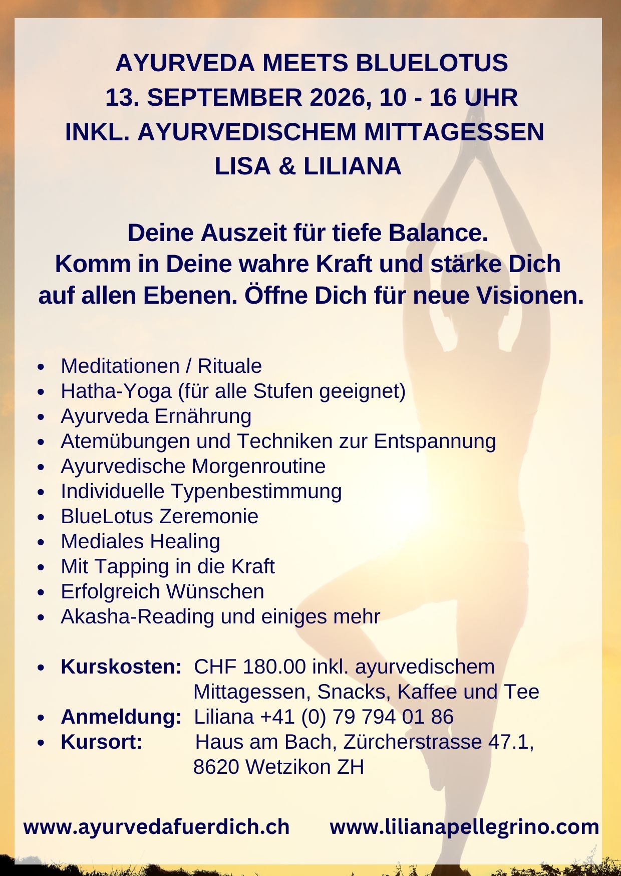 Kurskosten: CHF 180.00 inkl. ayurvedischem