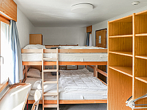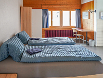 Vier Doppelzimmer für Leiter (mit Lavabo), zwei 8-Bett-Zimmer und sechs 4-Bett-Zimmer.