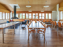 2 Waschräume mit je 3 Duschkabinen, Skiraum und Garderobe. Grosser Aufenthalts- und Essraum mit offenem Kamin. Grosse Küche für Selbstversorger sowie ein Klassenzimmer im Untergeschoss. Tischtennistisch im Freien und im Untergeschoss. Tischfussball im Untergeschoss. Die Zimmer sind ausreichend beheizt. Bettwäsche inkl. Duvet und Kissen sind vorhanden. Ein Schlafsack ist nicht notwendig.